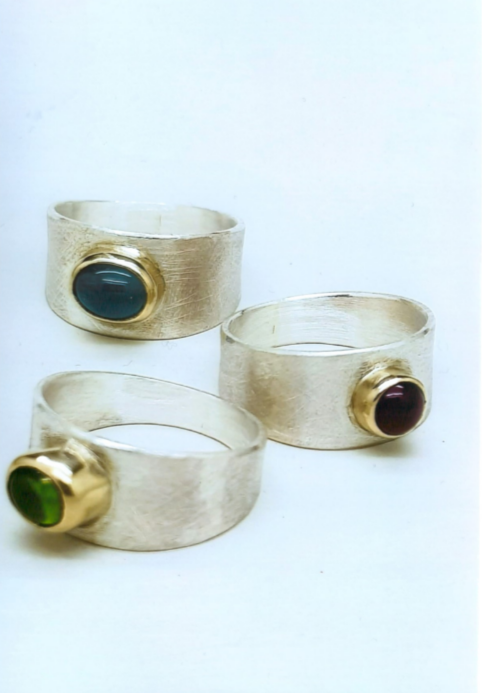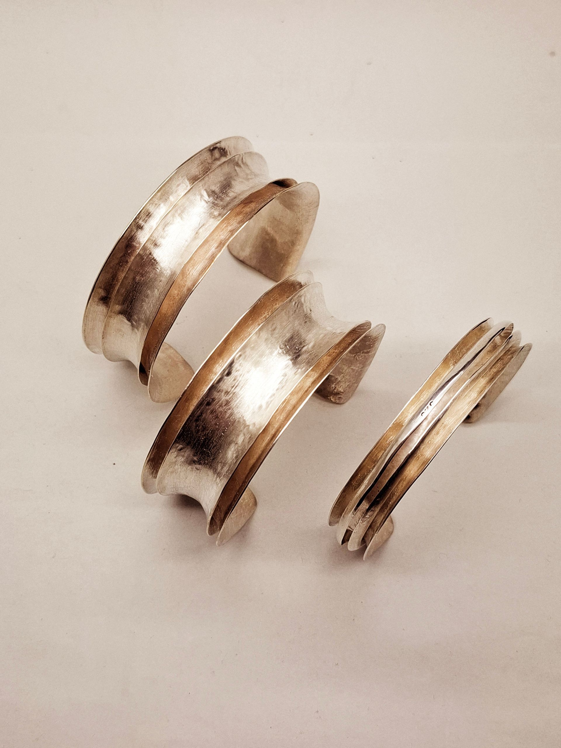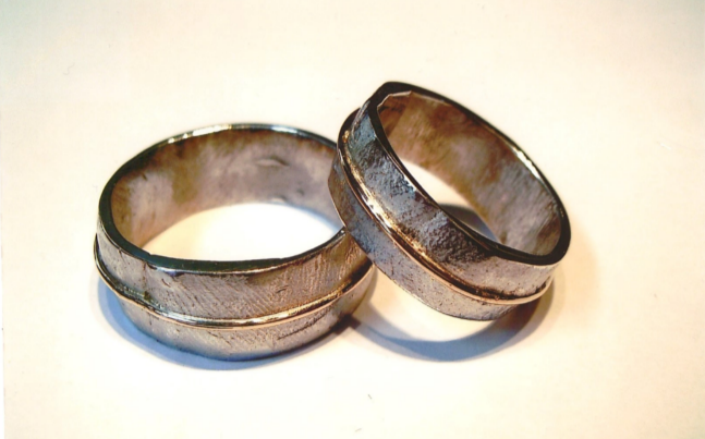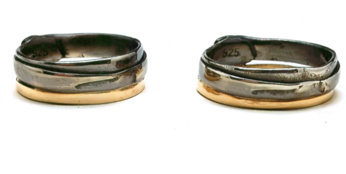 Sterlingsilber 925 /-, Faltenringe geschwärzt, Goldrand 585 /-