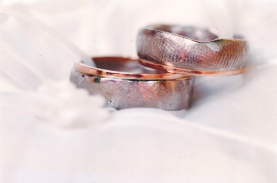 Sterlingsilber 925 /- mit Fingerabdrücken, gegossen und Goldrand 585 /-